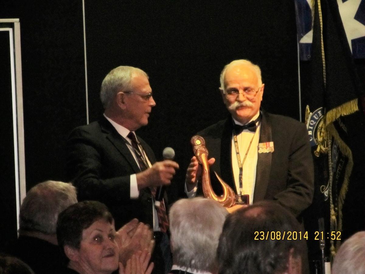 Tony McLeod, President of the NZ Artillery Association, made a presentation on our behalf to the Australian Artillery Association at the “Australian National Gunner Dinner” held in Caloundra 23 August. The presentation was received by Kim McGrath, President of the Australian Artillery Association.