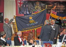 The Australian group - President Kim McGrath and his six fellow members -  left the diners in awe when they presented the Assn with a magnificent banner, beautifully gilt embroidered with RNZA Assn name and badge.