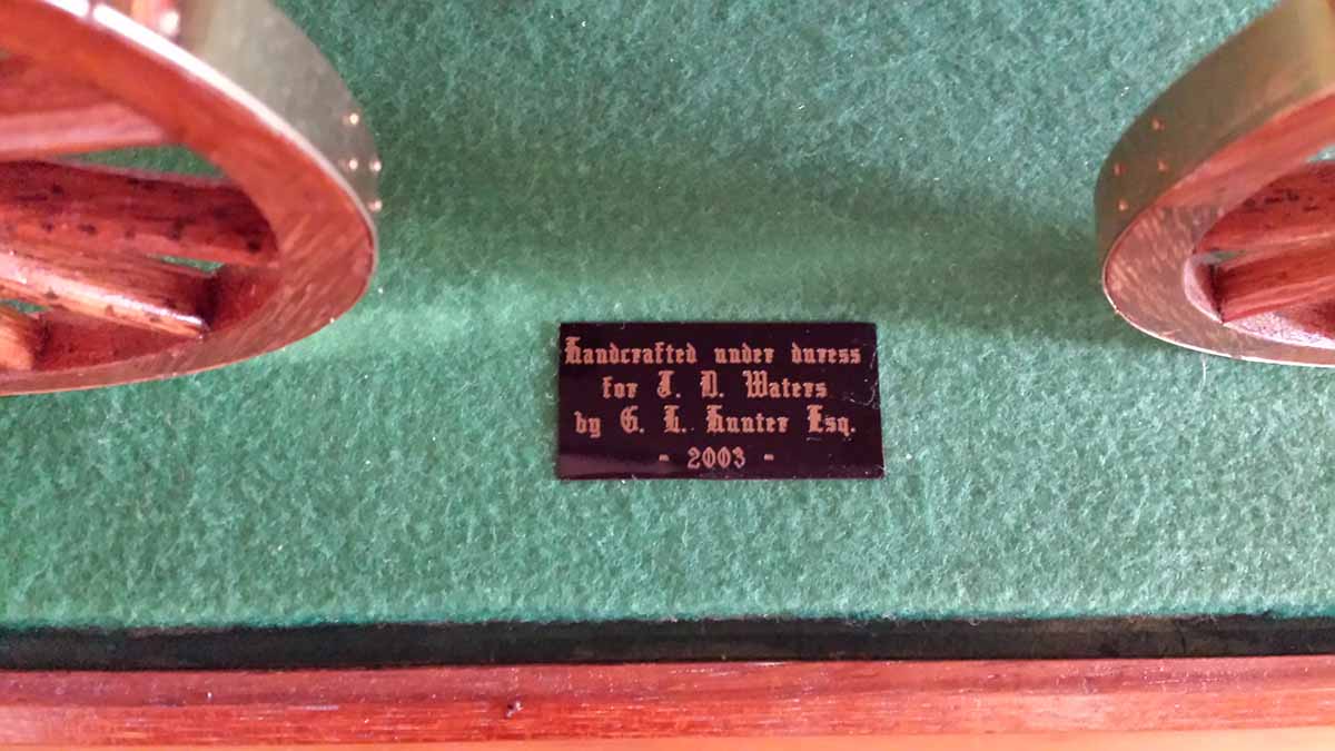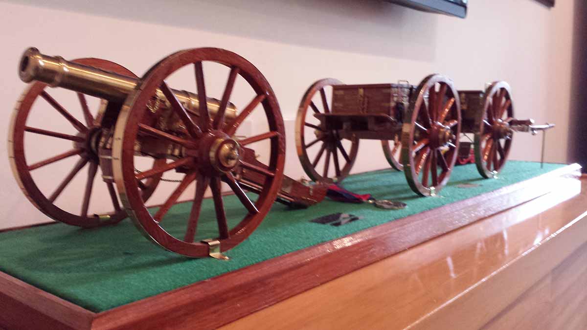 A model of a 'British Waterloo Canon' was commissioned by the late Jeffery Waters. It was later bequeathed to 'The Regiment' by Jeffrey in his will. The gun was presented to The Colonel Commandant, Colonel Barry Dreyer, on St Barbara’s Day 2013 at the Papakura RSA. The gun is now on permanent displayed at 16 Field Regiment HQ. Linton.