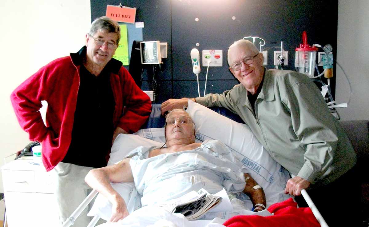 I was able to visit Fred in Waikato Hospital yesterday. I stood at the end of his bed and said “get out of bed soldier” he looked around an